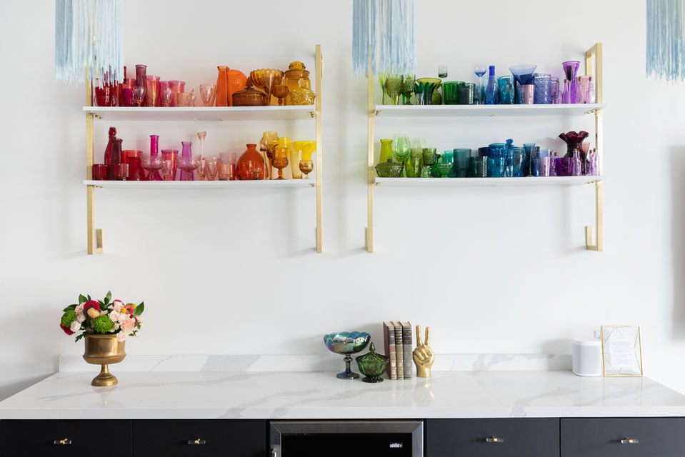 This was a fun one! We remodeled a commercial space and turned it into the chicest nail salon in Sacramento. In the lobby, we custom made a Sacramento photo wall. Over the drying bar, we collected a selection of rainbow vintage glassware. And on the back wall, we had local artist Jeremy Stanger do a nail polish inspired drip mural. Boutique hotel vibes and a luxurious client experience were our top goals.